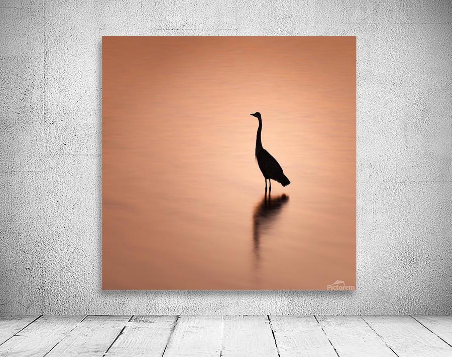 ABOUT THIS ARTWORK: BLUE HERON SILHOUETTE AND REFLECTION