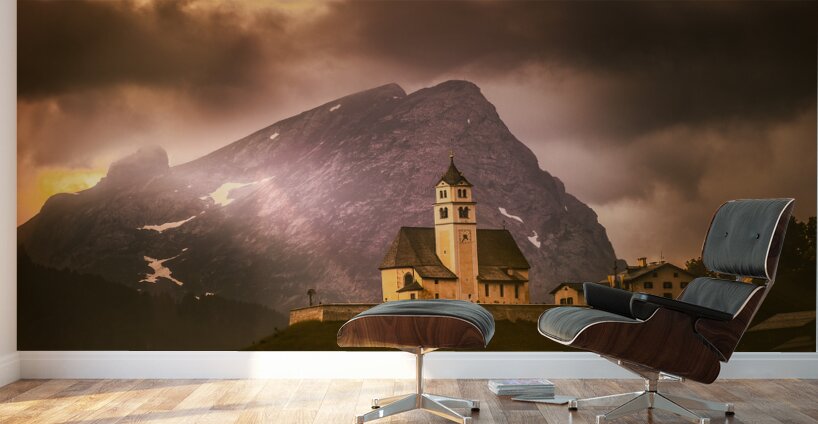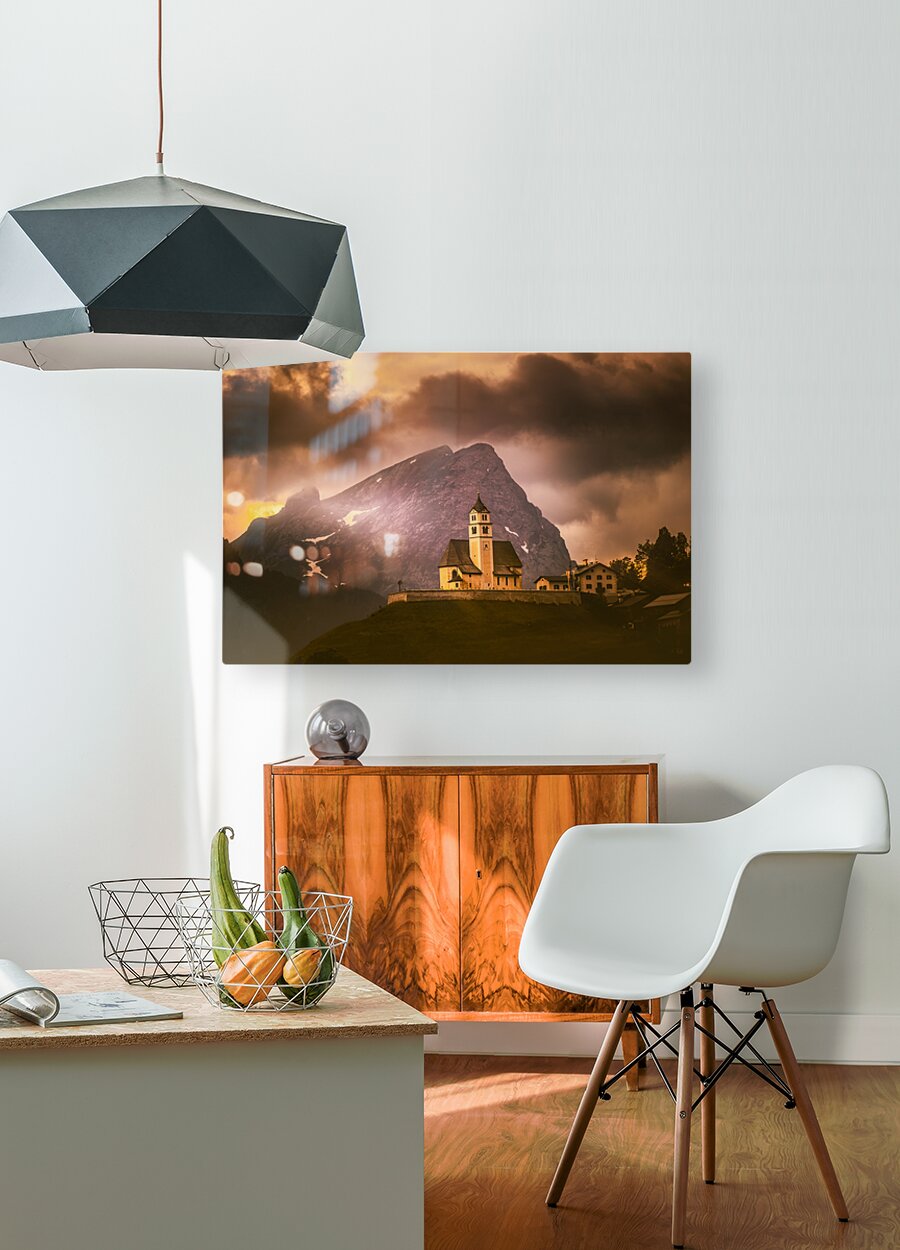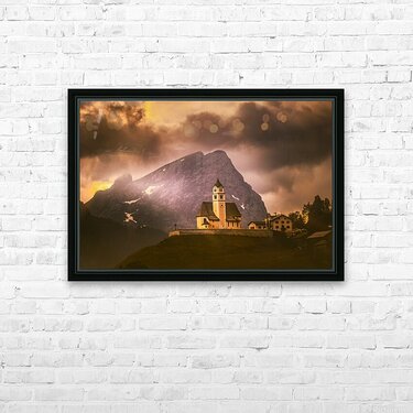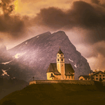 I was hopeful I would be able to get some night milky way images on our trip to the Dolomites over images like this alpine church of Coi, Chiesa di Santa Fosca with views of Mount Civetta and Pelmo Mountain in the Zoldo valley, north of Venice. It didn't happen. The days we were in the area, the skies were cloudy, filled with wonderful clouds which helped make up for the loss of photos I was hopeful I would be able to take. The Church of Santa Fosca is a rather famous monument among the connoisseurs of the UNESCO Dolomites. It has an unusual shape located at the feet of Pelmo, Civetta and Cernera Mountains , this church is one of the best known and immortalized cultural destinations of the Province of Belluno. The structure is small and compact, with clear Gothic-Alpine influences . Frontally, the Church of Santa Fosca has a very particular pointed arch at the entrance, a rose window and two famous frescoes that show the figures of Santa Fosca and San Cristoforo . The bell tower is characterized by the onion shape and is completely covered with wooden tiles, as is the roof of the church. Internally, the church of Santa Fosca has a single nave and is richly decorated with hagiographic themed frescoes, sacred statues and an opulent wooden altar, attributed to the famous Andrea Brustolon . The Church of Santa Fosca is predominant in Val Fiorentina, it is the oldest religious center in the valley, even if the exact foundation date of the Church of Santa Fosca is not known. The church is mentioned for the first time in an official document from 1286. This area near the sites of the 2026 Olympics in Cortina!