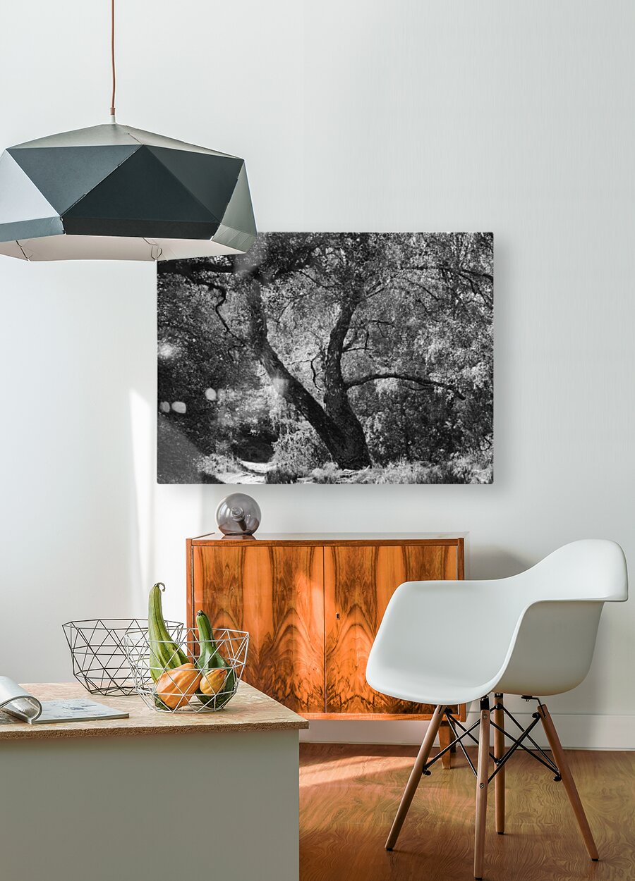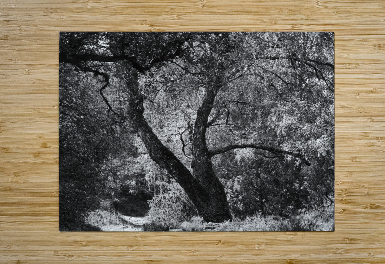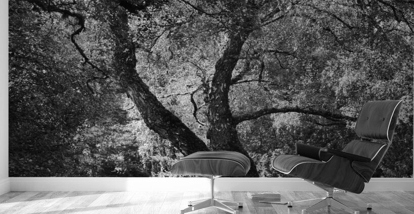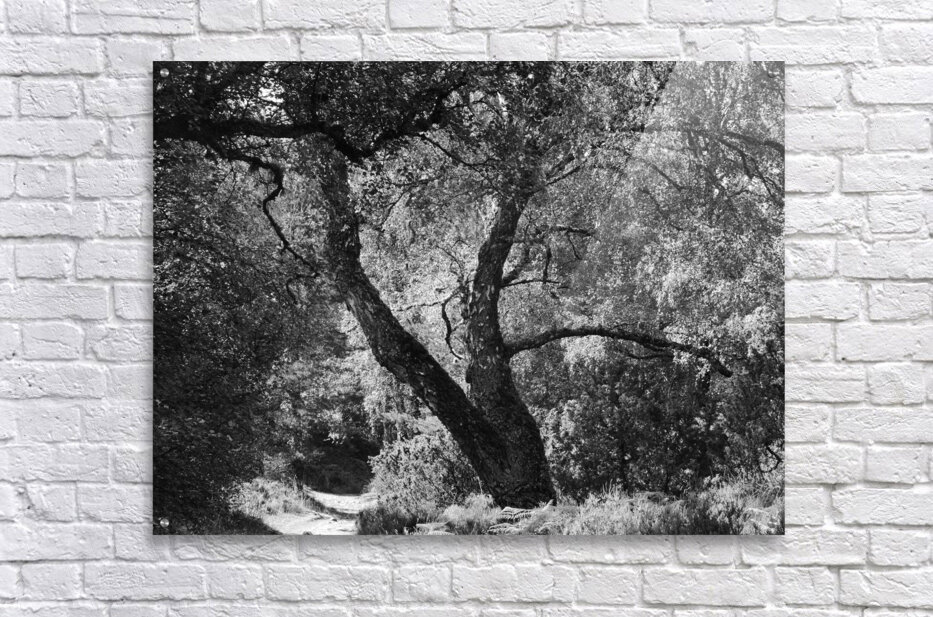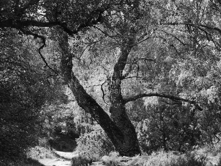 I took this photo in high contrast black and white, during a lovely sunny nature walk through the Scottish Highlands. I was so impressed with this scene on arrival that I couldn't resist taking this shot. It features sunlight filtering through the dense foliage of an impressive large, twisted, Birch tree along a secluded woodland path, perfectly capturing the dramatic play of shadow and light.