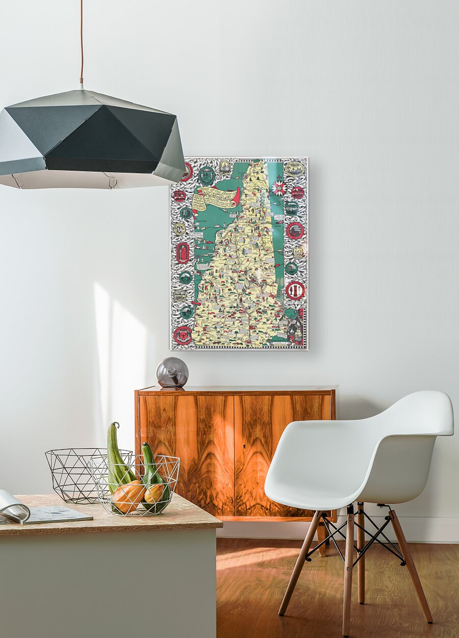 1926 Pictorial Map of New Hampshire – Whimsical and Informative Illustration Featuring Towns Landmarks Mountains and Local Folklore in a Classic New England Decorative Style Picture Frame Printing