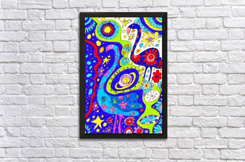 Abstract Doodle Art Flamingos Picture Frame Printing