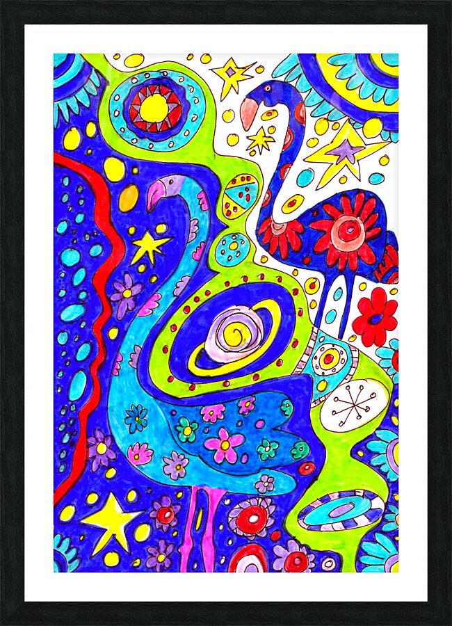 Get this artwork "Abstract Doodle Art Flamingos" in a framed print.