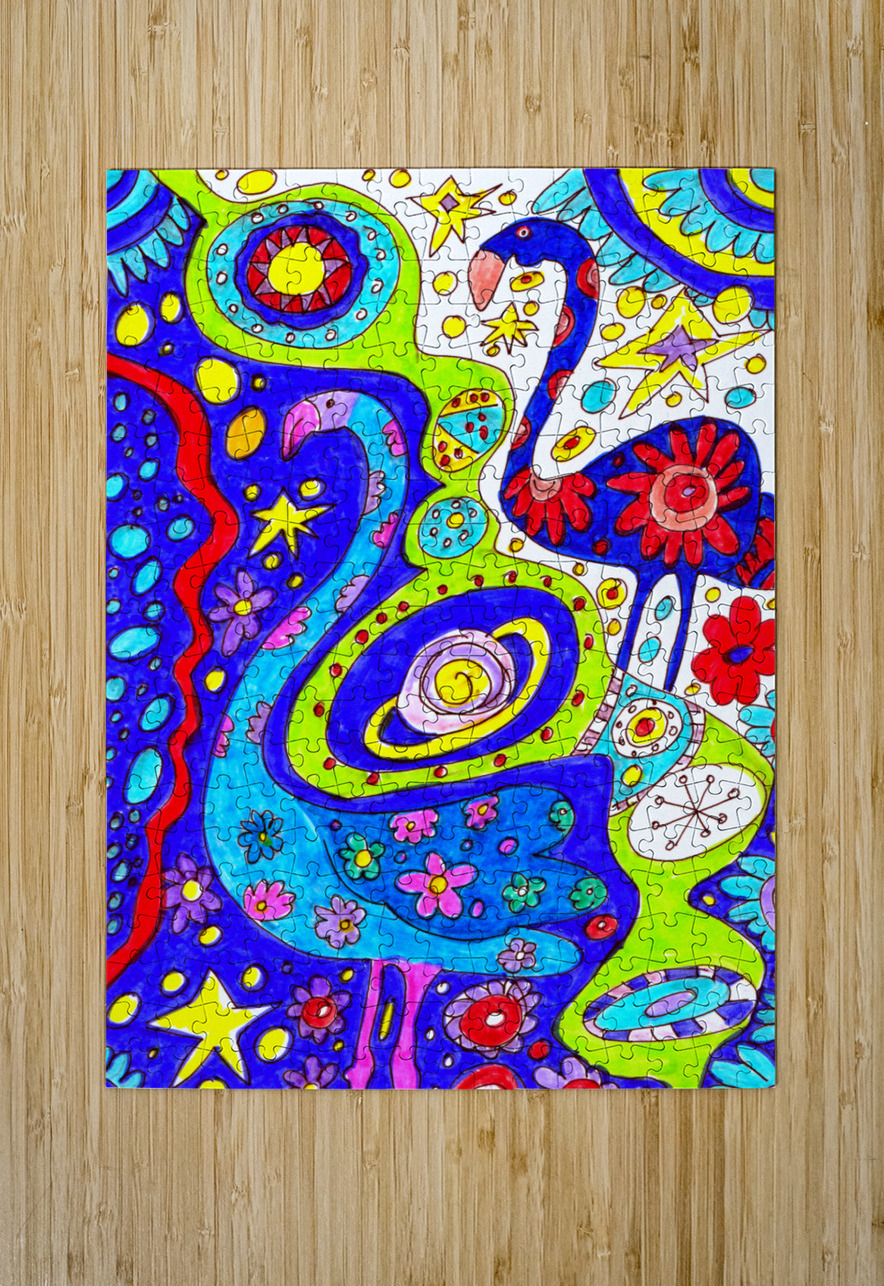 Abstract Doodle Art Flamingos Catriona Roberts Nature Photography and Designs Puzzle printing
