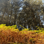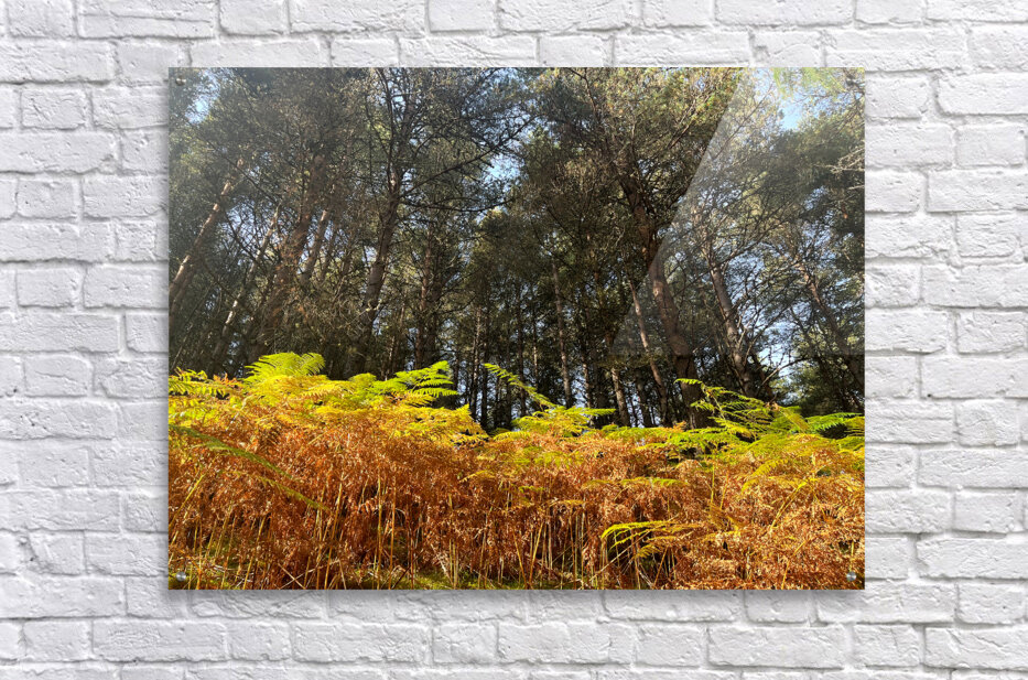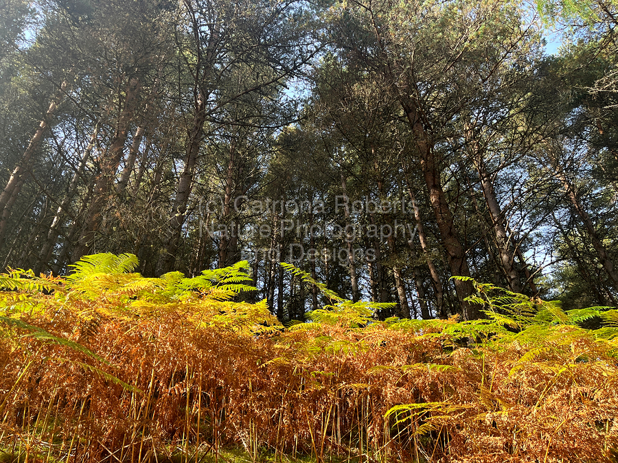 I took this photo during a lovely autumnal walk in the Scottish Highlands. Features tall Pine trees stretching upwards, casting dappled shadows over the lush ferns below. The bright green and warm brown hues of the foliage highlighted the transition between seasons. I was actually standing beneath the ferns looking up wards, and love the perspective this gave.