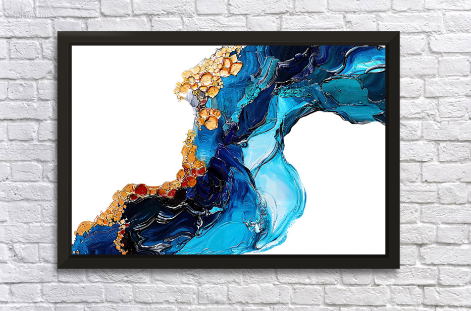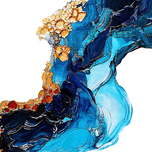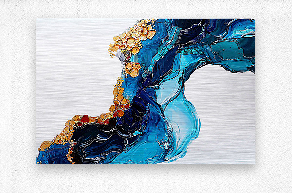 "Elysian Waves - The Golden Symphony" - Authentic digital art by ARTenyo. Transports viewers into a realm where the sea and light converge in perfect harmony. This artwork masterfully blends deep cerulean and aqua hues with shimmering golden accents, evoking the ethereal beauty of sunlit waters. Each brushstroke flows gracefully, mirroring the rhythmic ebb and flow of the ocean, while the radiant gold captures the fleeting moments of dusk and dawn. This piece resonates with the tranquility of nature’s melody, inviting contemplation and inspiring a sense of serenity. "Elysian Waves" serves as a tribute to the sublime artistry of the natural world, celebrating the beauty found in each fluid motion.
