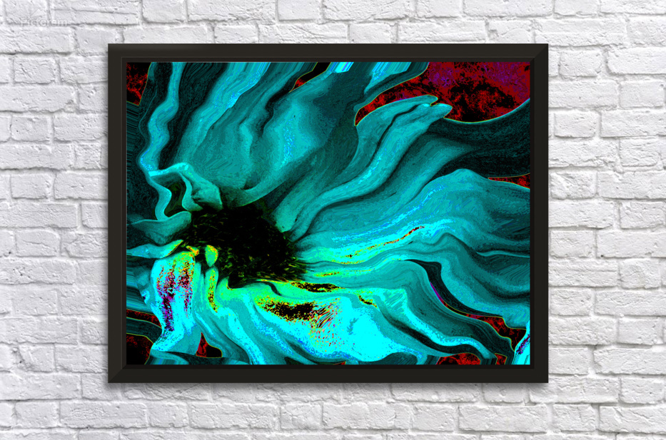 Get this artwork "Abstract Daisy in Vibrant Blues and Greens" in a framed print.