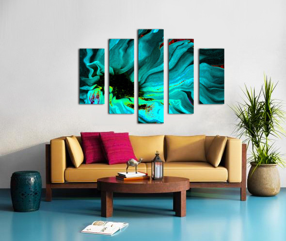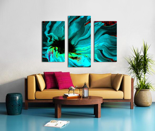 Abstract Daisy in Vibrant Blues and Greens Canvas print