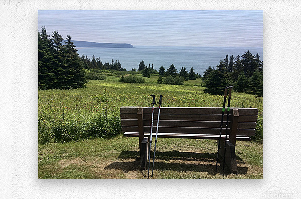 Get this artwork "Hiking poles at lookout " in a framed print.