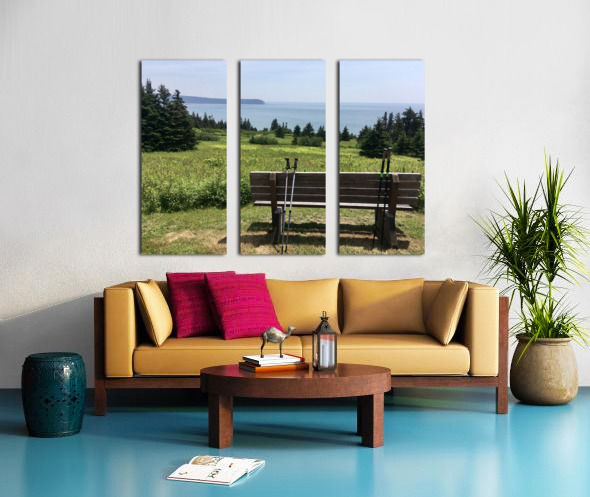Hiking poles at lookout  Canvas print