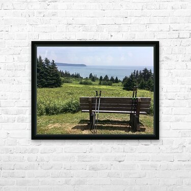 Hiking poles at lookout  Frame print