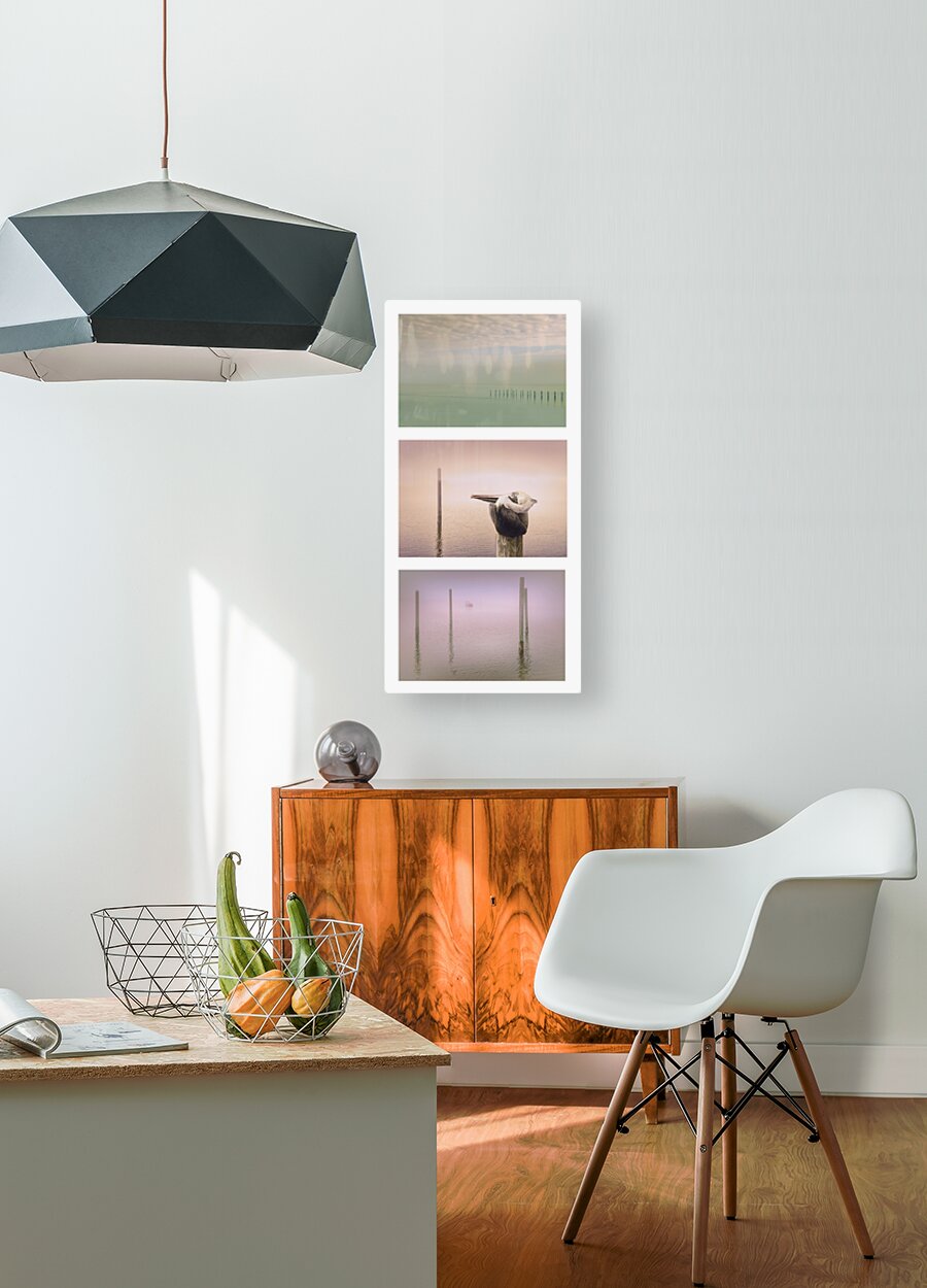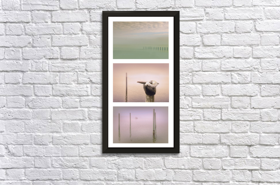 Get this artwork "Pensacola Beach Pelican Pilings Triptych" in a framed print.