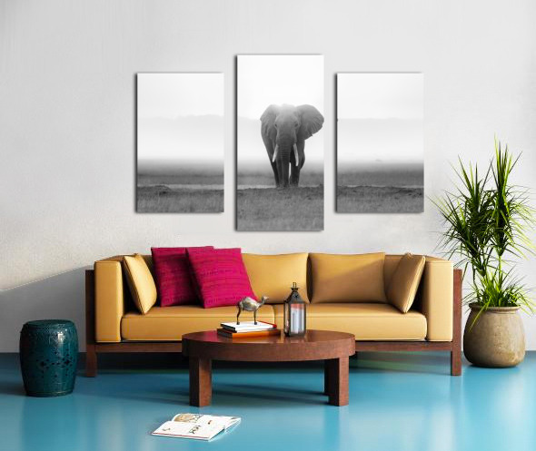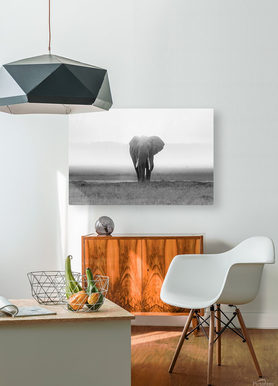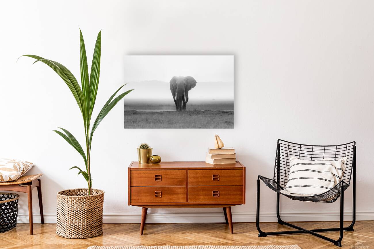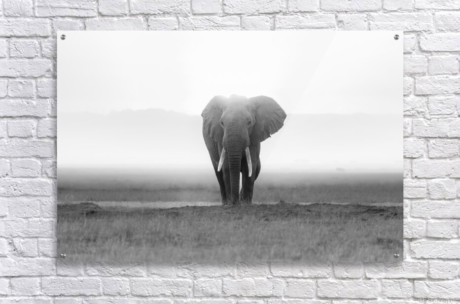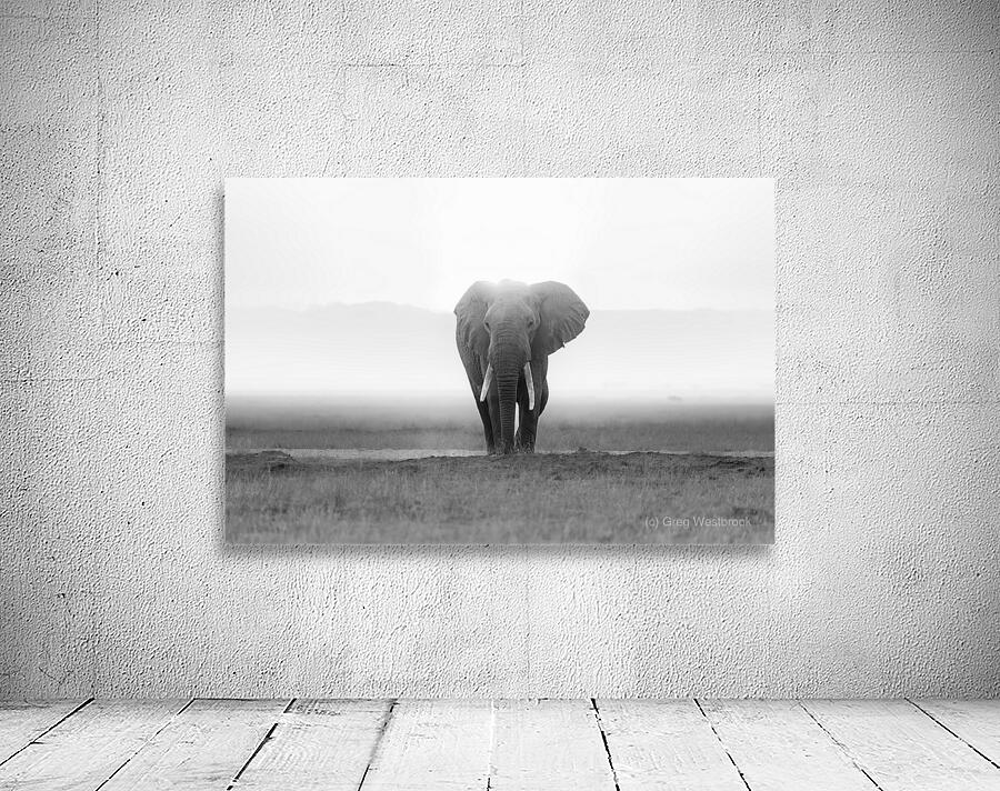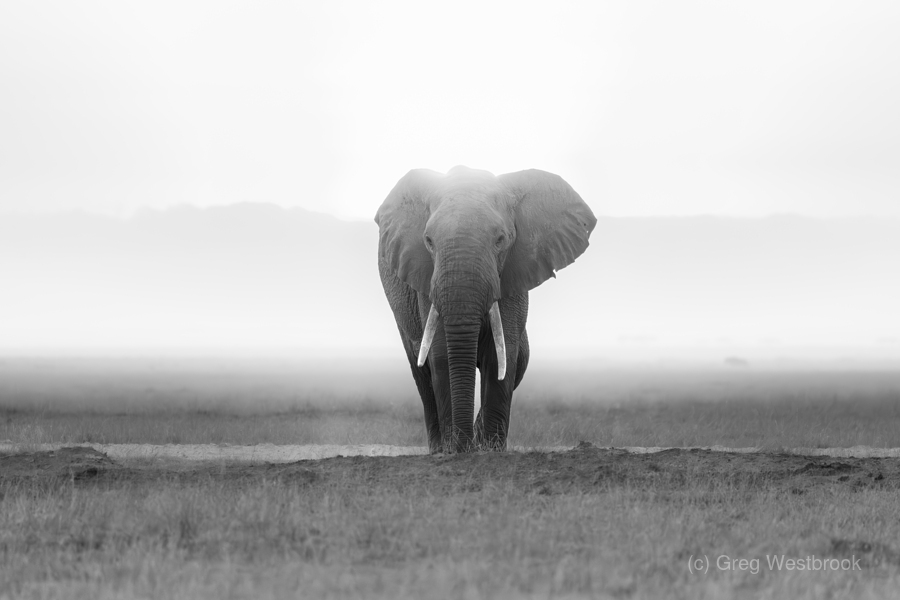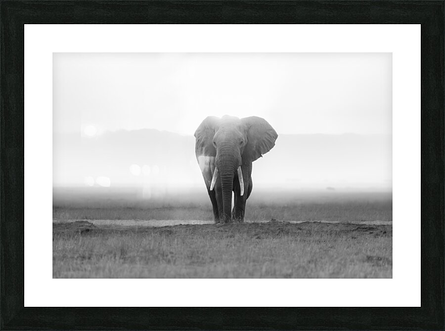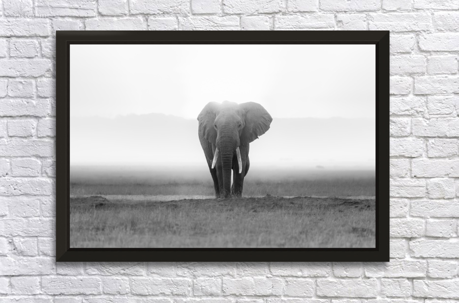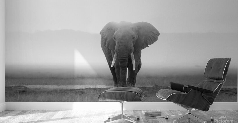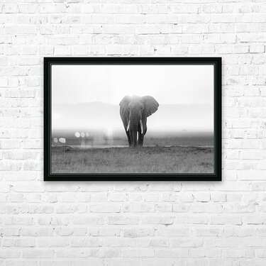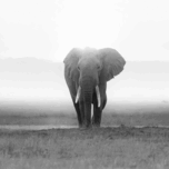 An elephant emerges from the morning mist in this powerful black-and-white composition embodying the quiet strength and dignity that defines these mag...[+]