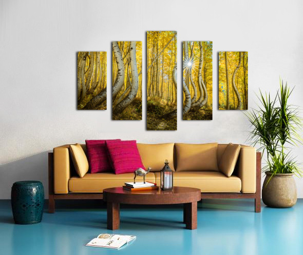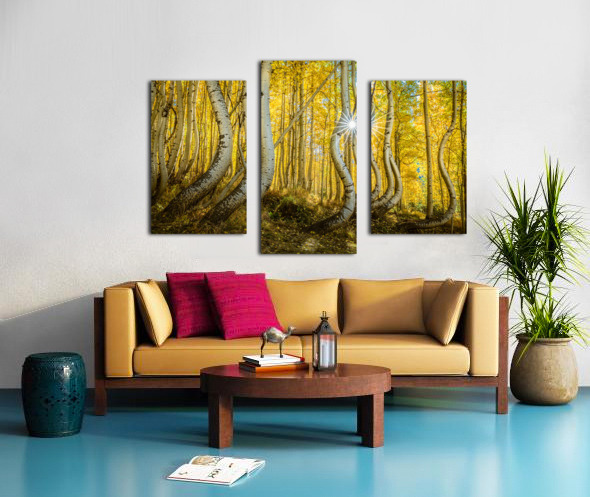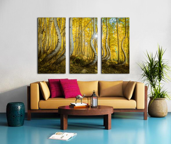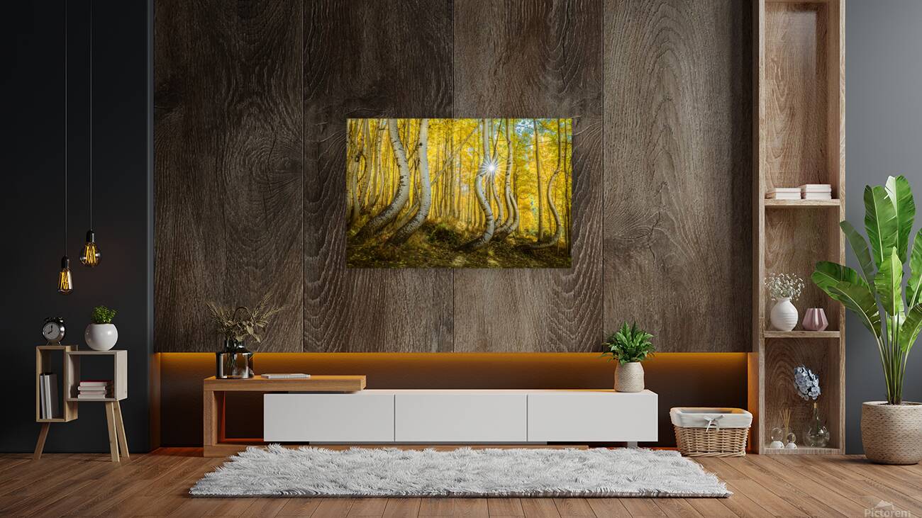 A radiant sunburst filters through an enchanting aspen forest casting golden hues across the twisted trunks and delicate leaves. The playful curves of...[+]