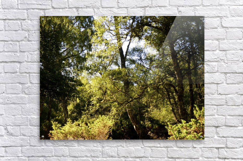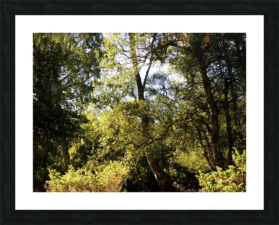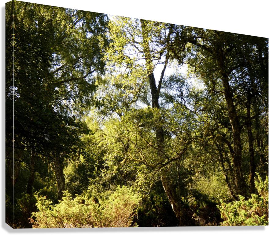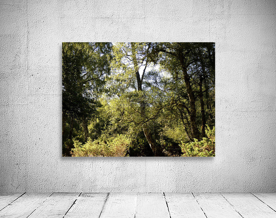 I took this photo during a lovely summer nature walk through the Scottish Highlands. Features sunlight filtering through a dense canopy of green leave...[+]