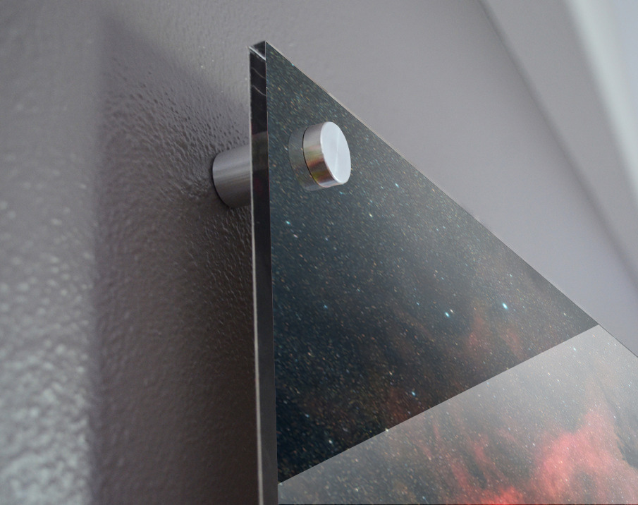 Printed to the edge - Ready to hang - provided with 4 premium polished aluminum stand off ( wall screws and mounting hardware provided )