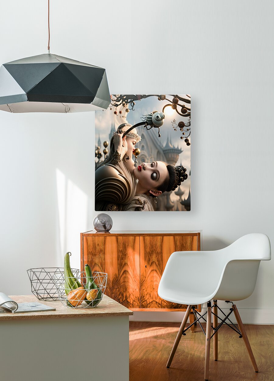 In a world where reality dances with the surreal the scene unfolds like a dream woven from shadows and whispers. Two figures emerge their forms exquis...[+]