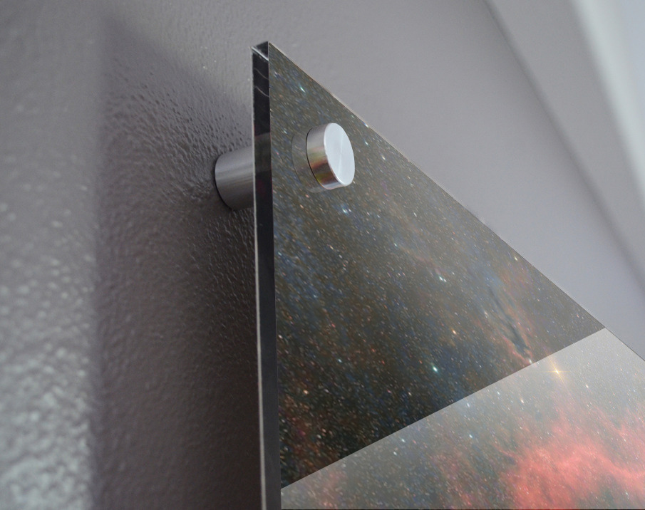 Printed to the edge - Ready to hang - provided with 4 premium polished aluminum stand off ( wall screws and mounting hardware provided )