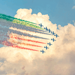 FIGHTER JETS PERFORMING AIRSHOW WITH COLORFUL EXHAUST STREAMS IN SCENIC CLOUDS