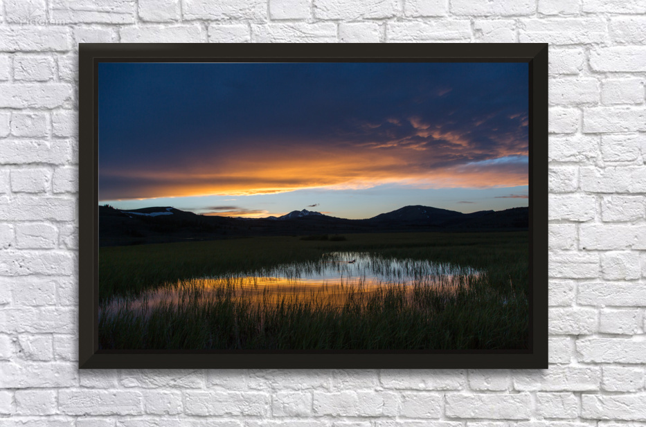 Spring sunset Swan Lake Frame print