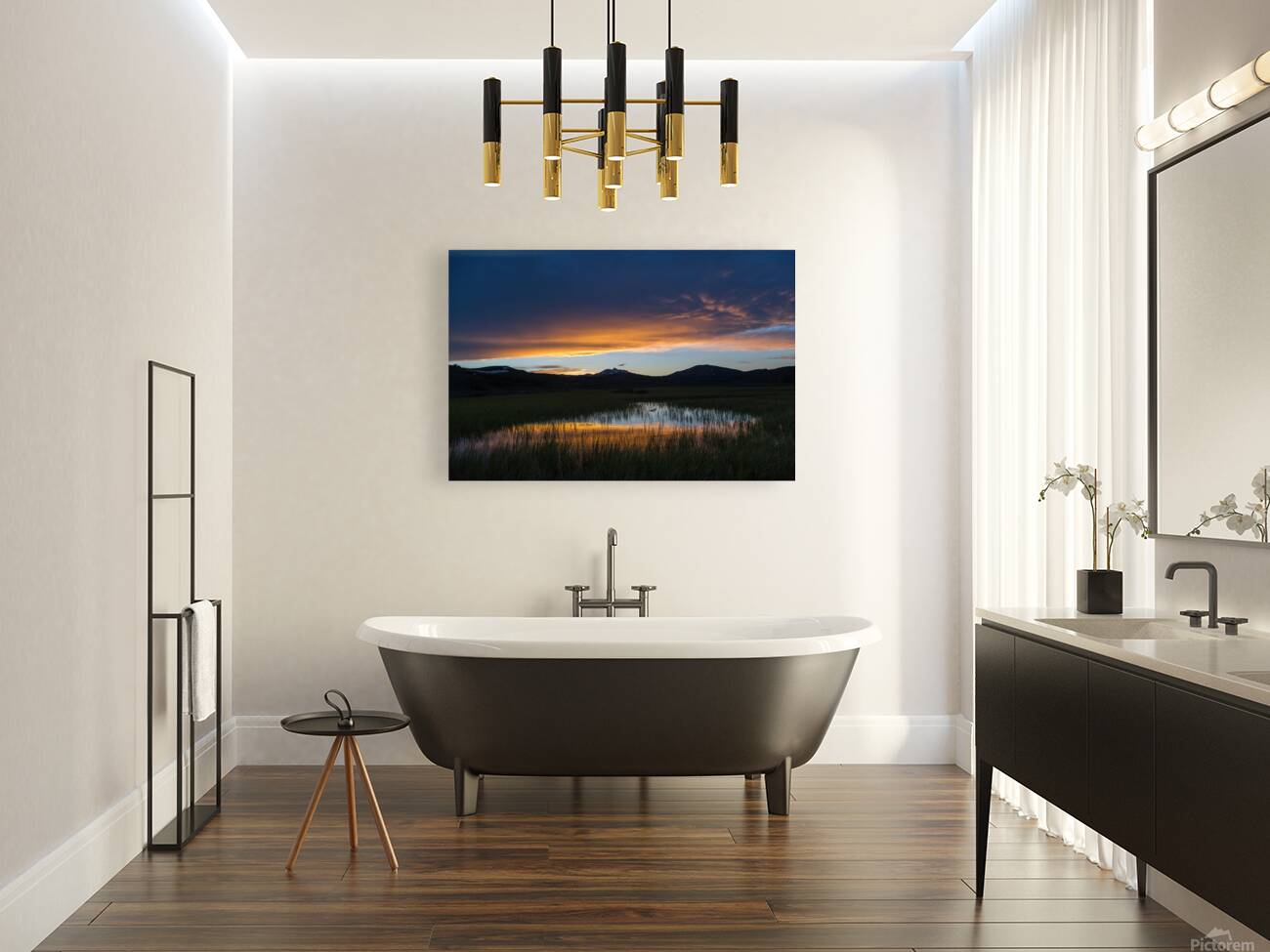 Spring sunset Swan Lake Picture Frame Printing
