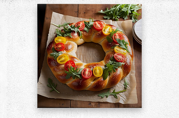 Artisan Bread Wreath with Fresh Gourmet Toppings – Perfect for Entertaining or Gifting HD Sublimation Metal print