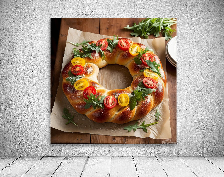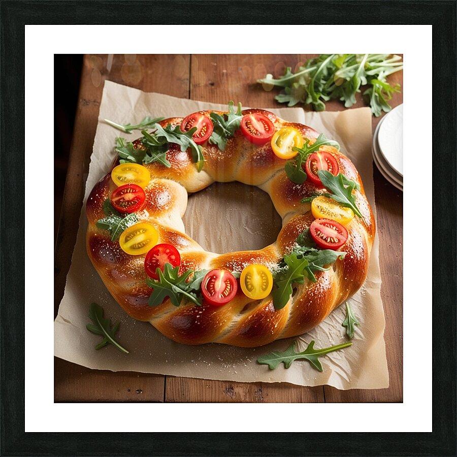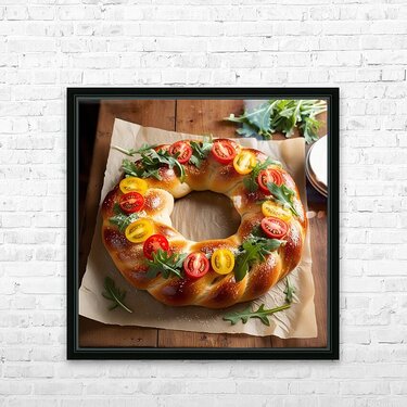 Artisan Bread Wreath with Fresh Gourmet Toppings – Perfect for Entertaining or Gifting Frame print