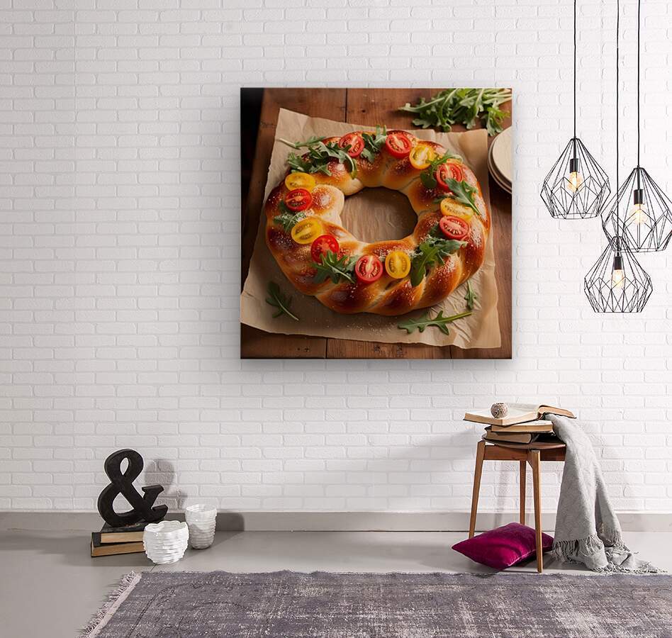 Artisan Bread Wreath with Fresh Gourmet Toppings – Perfect for Entertaining or Gifting  Wood print