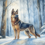 NOBLE GERMAN SHEPHERD IN A SERENE SNOWY FOREST - WATERCOLOR WINTER