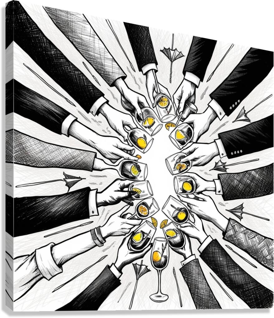 CHEERS IN INK: HAND-DRAWN CELEBRATION ARTWORK BOUBKER GOUGASSE  Canvas Print