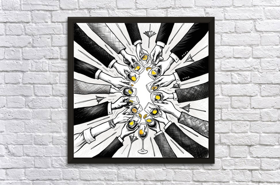 Cheers in Ink: Hand-Drawn Celebration Artwork Wall Decor Frame