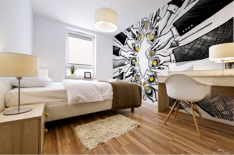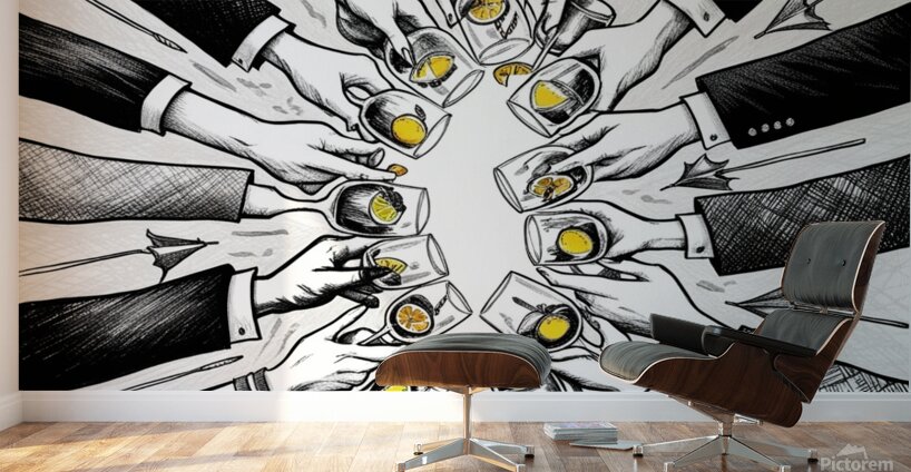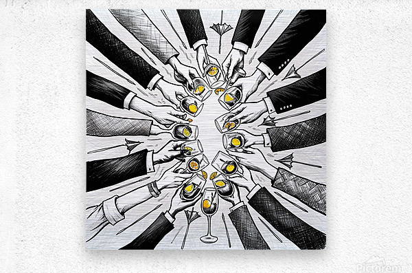 Cheers in Ink: Hand-Drawn Celebration Artwork HD Sublimation Metal print