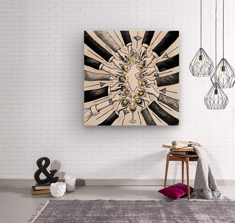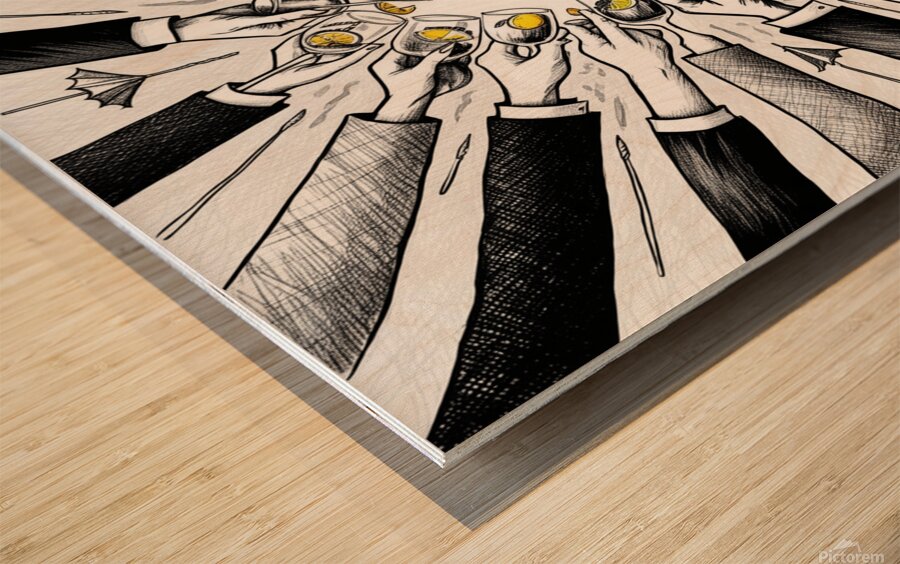 Cheers in Ink: Hand-Drawn Celebration Artwork  Wood print