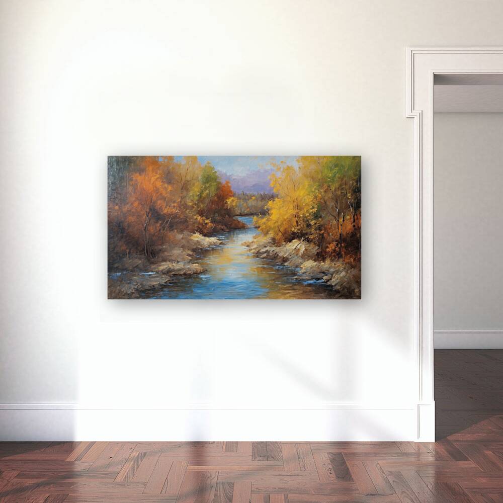 For optimal printing results we recommend ONLY selecting the Canvas print option with the Knife Varnish finish. Enhance the presentation further by adding a 1-inch frame for a polished and professional look. The Path and the Stream The path winds softly through the wood A trail where countless footsteps stood. Its earthen bed both worn and true Knows stories old yet always new. Beside it runs a restless stream A silver thread through nature’s dream. Its waters sing a ceaseless tune By sunlit morn and under moon. The path is steady sure and slow Through shadowed glens where mosses grow. The stream in contrast twists and leaps Through rocky falls and hidden deeps. Together they a pair entwined One seeking stillness one unconfined. The path reflects the steps we take The stream the risks we dare to make. At times they part their courses veer Yet always find their meeting near. The path bends low to kiss the stream Where whispers blend in nature’s theme. For life is both the path we tread And rushing stream where fears are shed. Together they create the flow A journey shared where spirits grow.