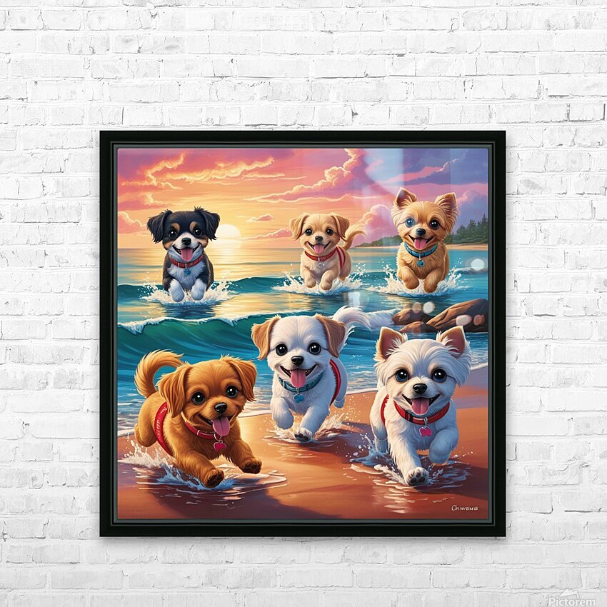Adorable Puppies Playing at the Beach | Cute Sunset Dog Illustration Picture Frame Printing