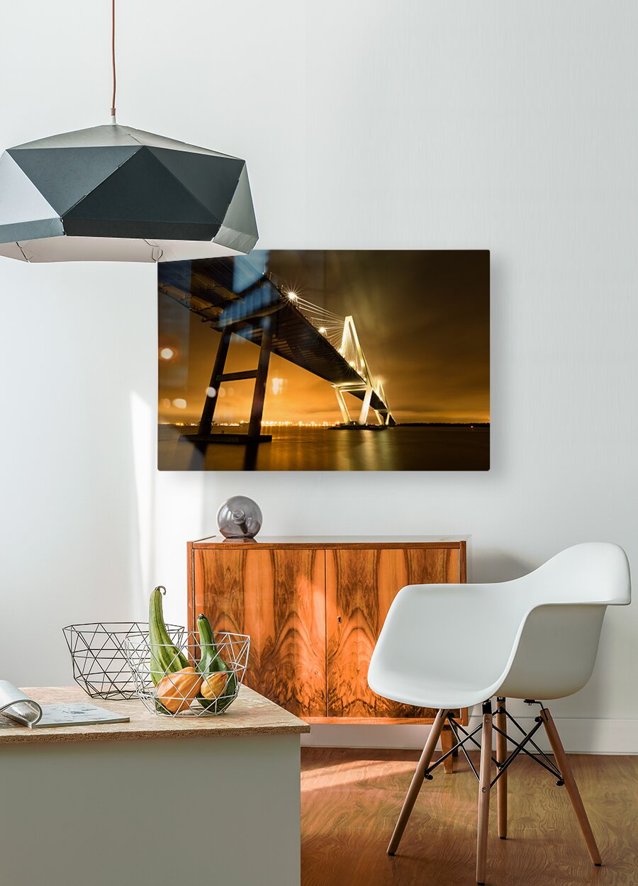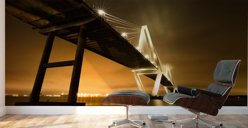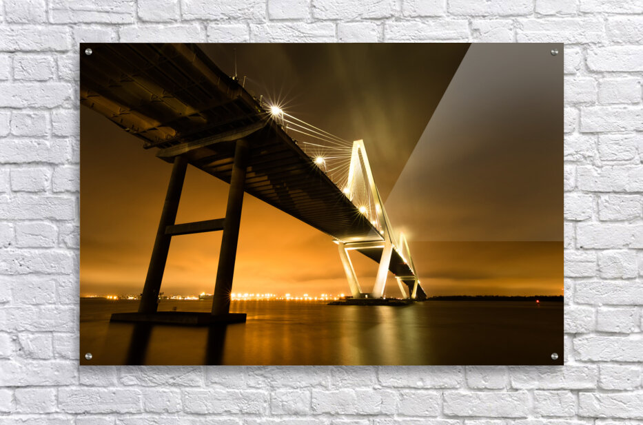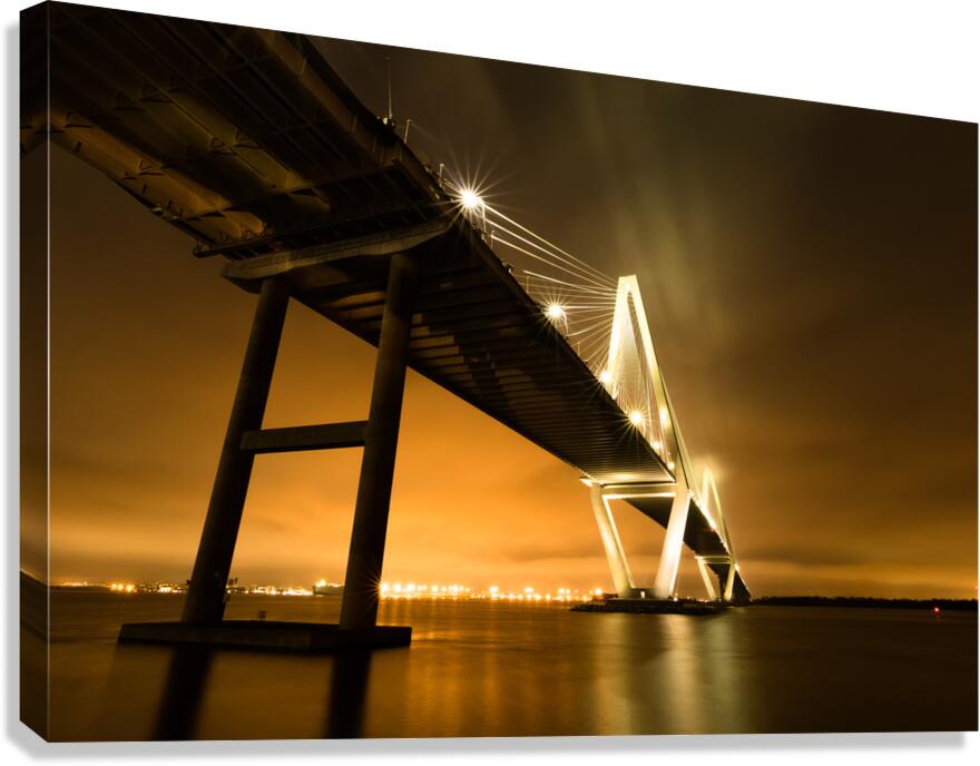 The architect of this magnificent bridge, the Charleston Arthur Ravenel Suspension Bridge live after his physical life is over. The evening view of this magnificent bridge, presented here in black and white is stunning when paired with the skyline view of old Charleston across the Cooper River under the bridge, The fog over this Charleston, South Carolina city park only enhances the structural, beautiful lines of this photograph. This is a favorite of mine and a best seller!