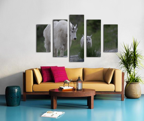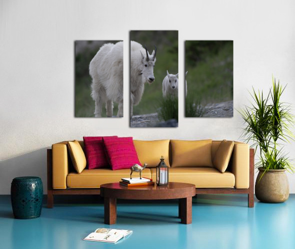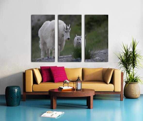Tender Moments: Mama Mountain Goat and Baby in Nature Canvas print
