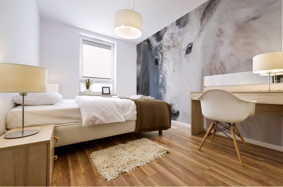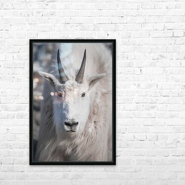 Majestic Close-Up: White Mountain Goat Portrait Picture Frame Printing