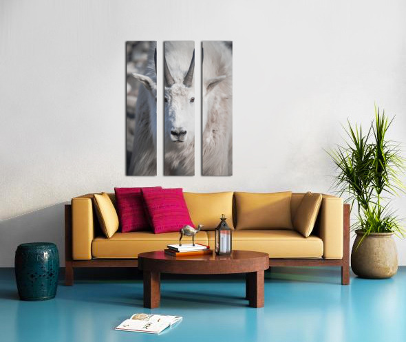 Majestic Close-Up: White Mountain Goat Portrait Canvas print