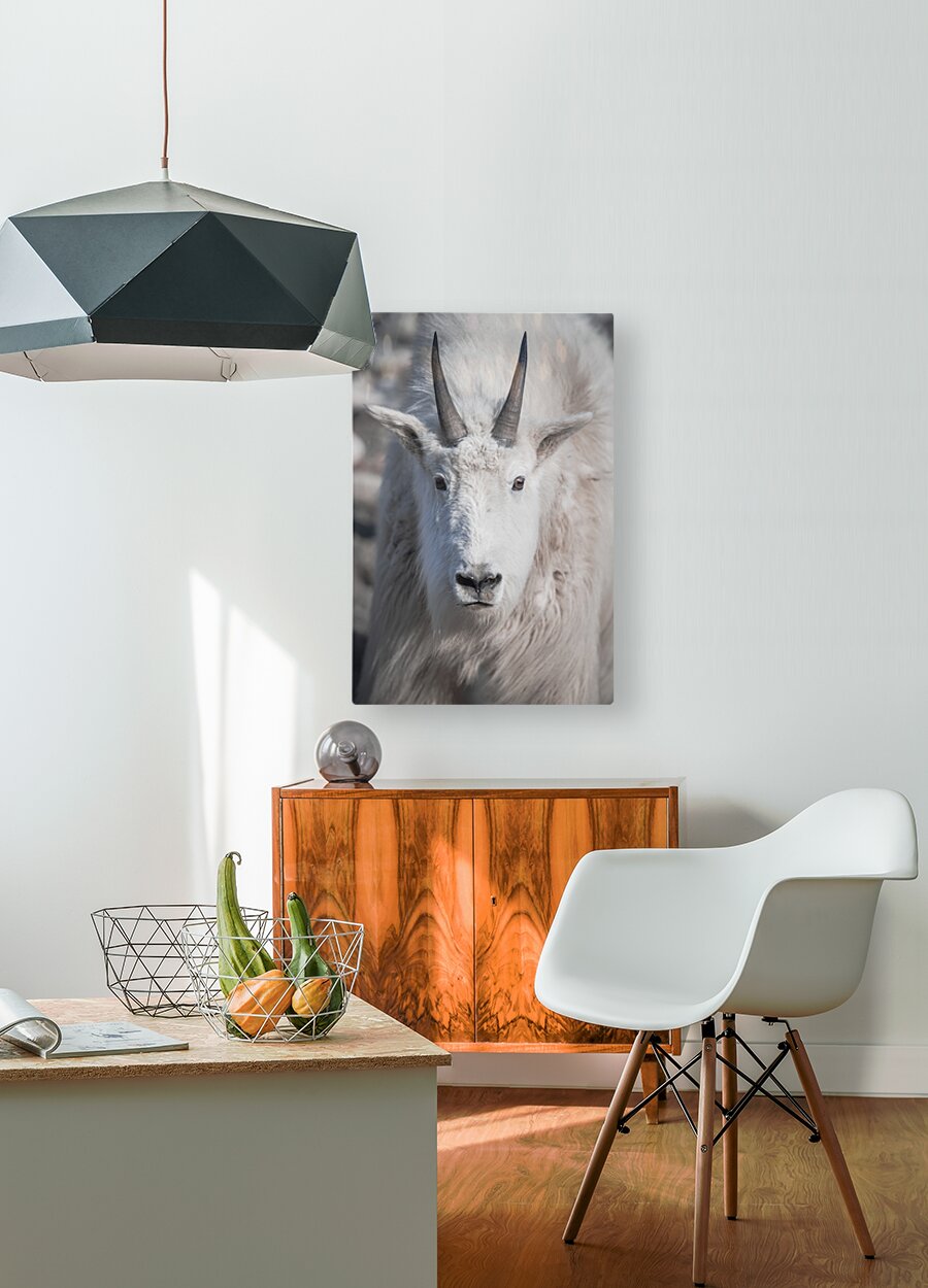 ABOUT THIS ARTWORK: MAJESTIC CLOSE-UP: WHITE MOUNTAIN GOAT PORTRAIT