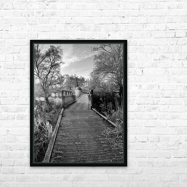 I took this photo during a chilly winter walk through the Scottish Highlands. Features a wooden bridge extending through a serene landscape surrounded...[+]