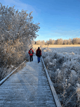 I took this photo during a lovely winter walk through the Scottish Highlands. Features two people walking along a frosty wooden path surrounded by win...[+]