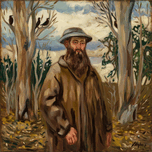 ABOUT THIS ARTWORK: A RUSTIC PAINTING OF A MAN WITH A LONG BEARD STAN