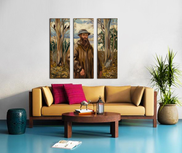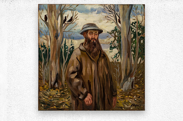 a rustic painting of a man with a long beard stan  HD Metal print with Floating Frame on Back