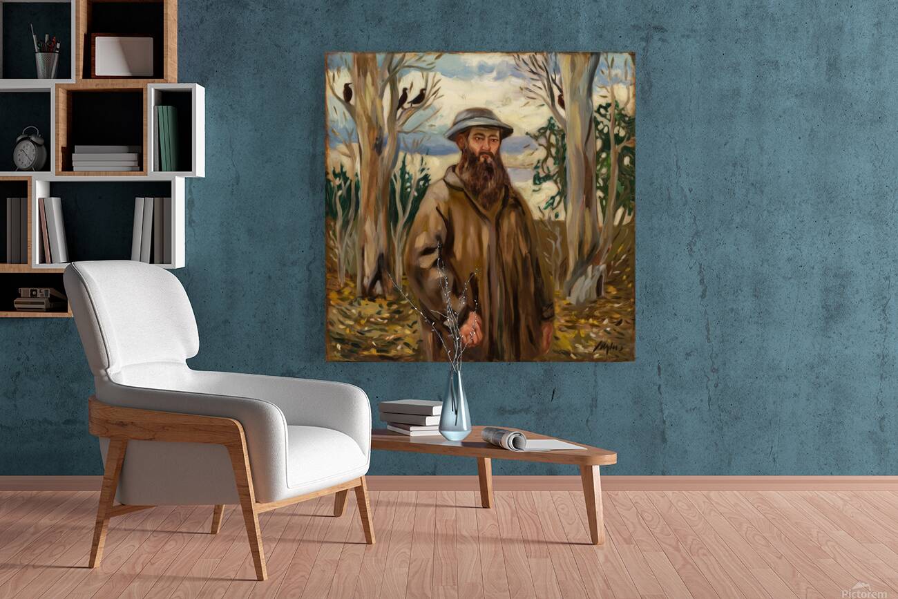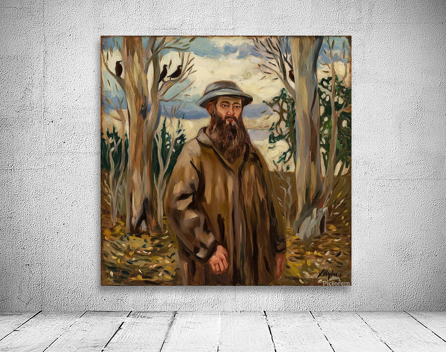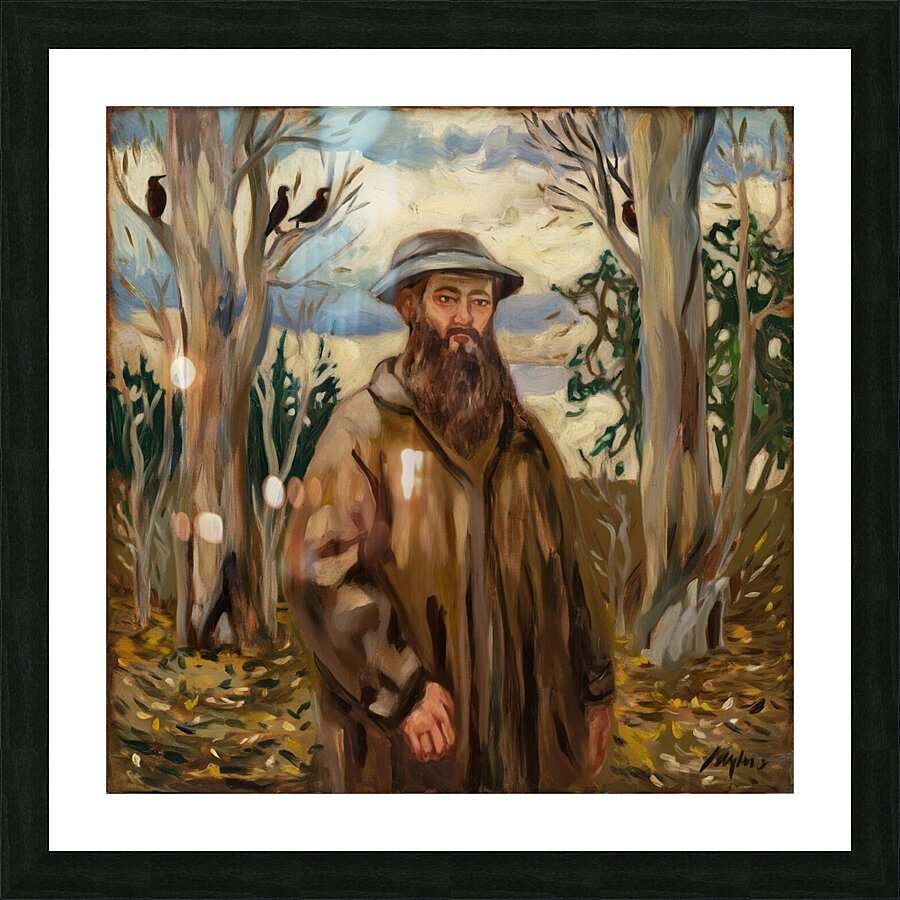 a rustic painting of a man with a long beard stan Picture Frame Printing