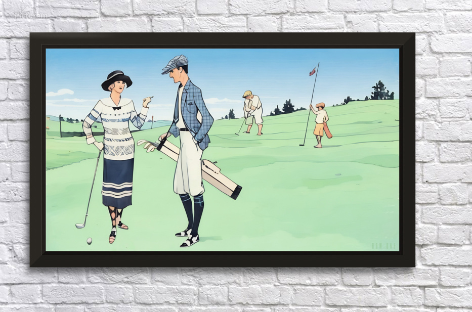 1923 Golf Art Remix | Original Artist A.B. Walker | Row One | Over 17,000 Historic Sports Art Prints | Created from a black and white drawing by famed...[+]