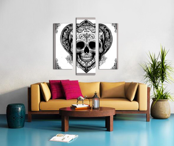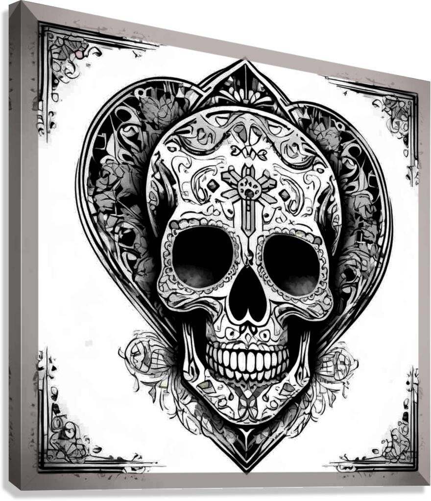 Symbols of Life  Sugar Skulls Hearts and Crosses Canvas print