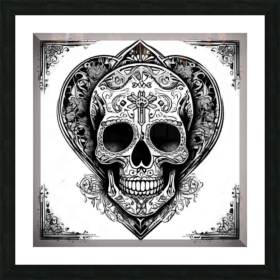 Symbols of Life  Sugar Skulls Hearts and Crosses Picture Frame Printing