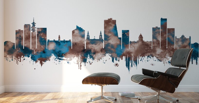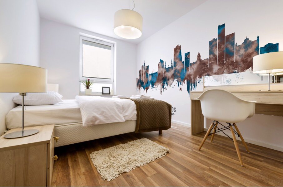 ABOUT THIS ARTWORK: LEEDS ENGLAND SKYLINE SEPIA