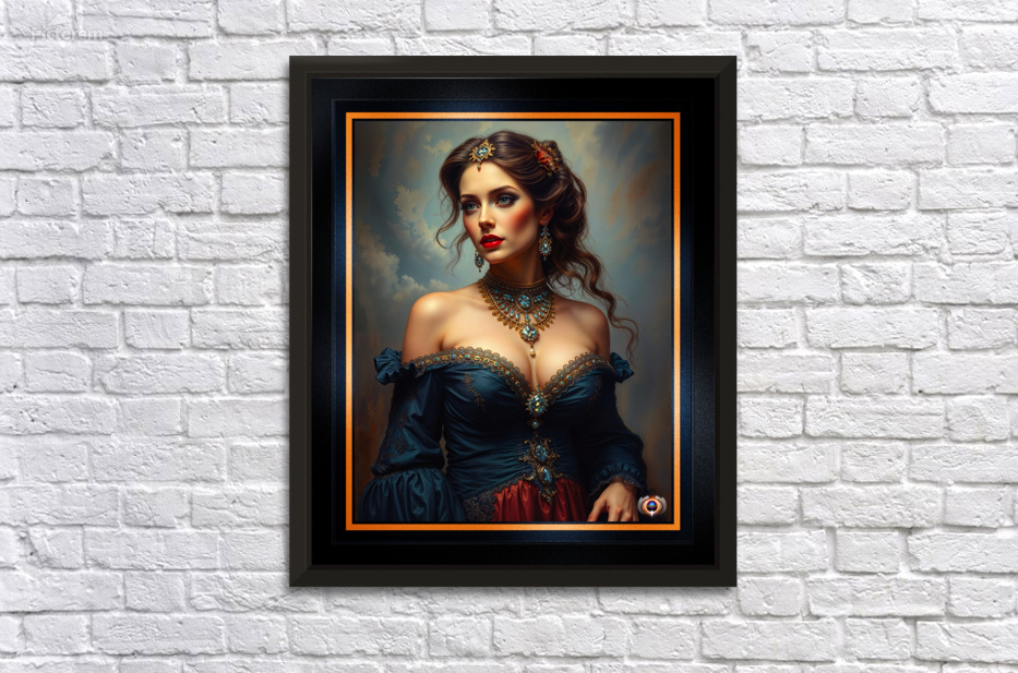 Exquisite Majestic Portrait Of A Timeless Aristocratic Beauty Mesmerizing AI Concept Art by Xzendor7 Wall Decor Frame