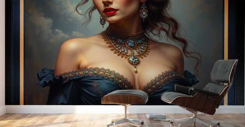 Exquisite Majestic Portrait Of A Timeless Aristocratic Beauty AI Concept Art by Xzendor7; captures the essence of regal elegance and aristocratic grace. This stunning artwork presents a woman of extraordinary beauty, draped in luxurious jewel-toned attire and adorned with intricate gold jewelry. Her serene yet powerful presence, enhanced by delicate details and a soft, ethereal background, evokes a sense of timeless nobility. Through meticulous craftsmanship and expert use of color, Xzendor7 brings forth a portrait that speaks to the quiet strength and sophisticated allure of a woman from a bygone era, forever preserved in this exquisite masterpiece.